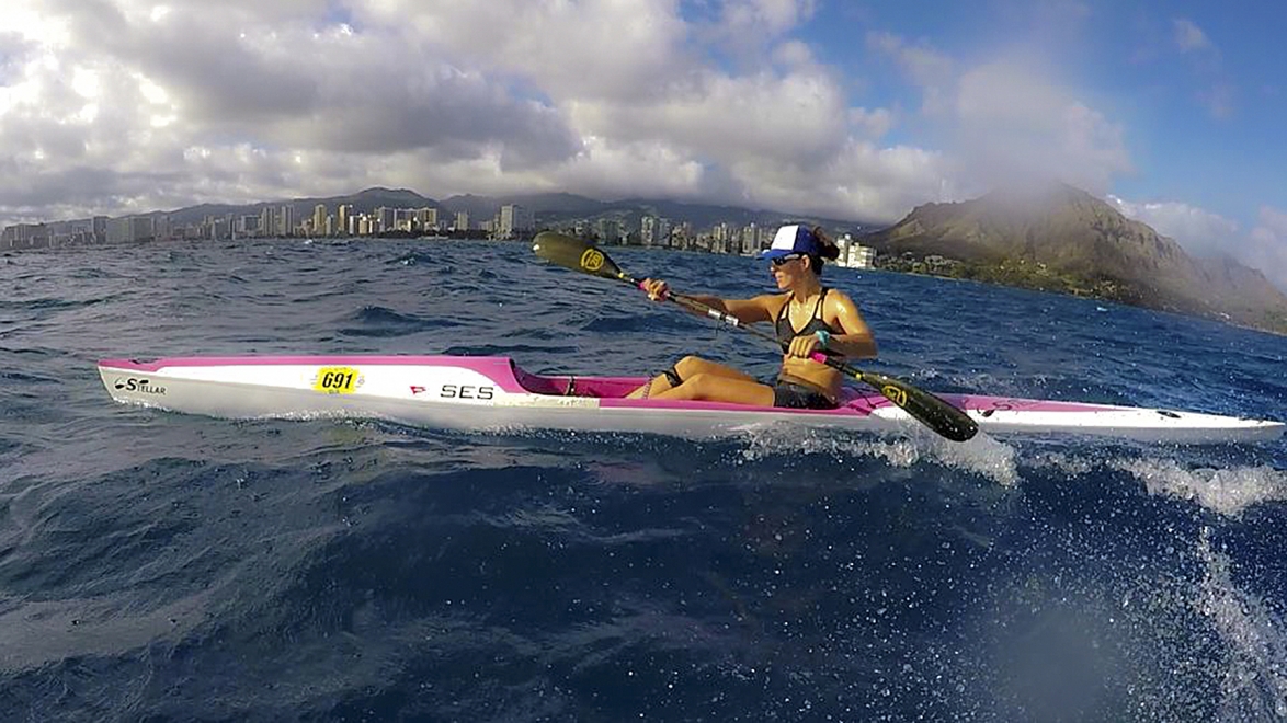 Surf Skis are designed for open ocean paddling in varying conditions. The hull shape is designed to be sleek and fast for fitness paddling or racing and will easily catch waves and swell in the ocean. The bow of the boat is shaped specifically to pierce large waves as well as shed water when submerged. The large volume of air in the bow also helps bring the boat back to the surface if the boat dives into a wave when running down it.
