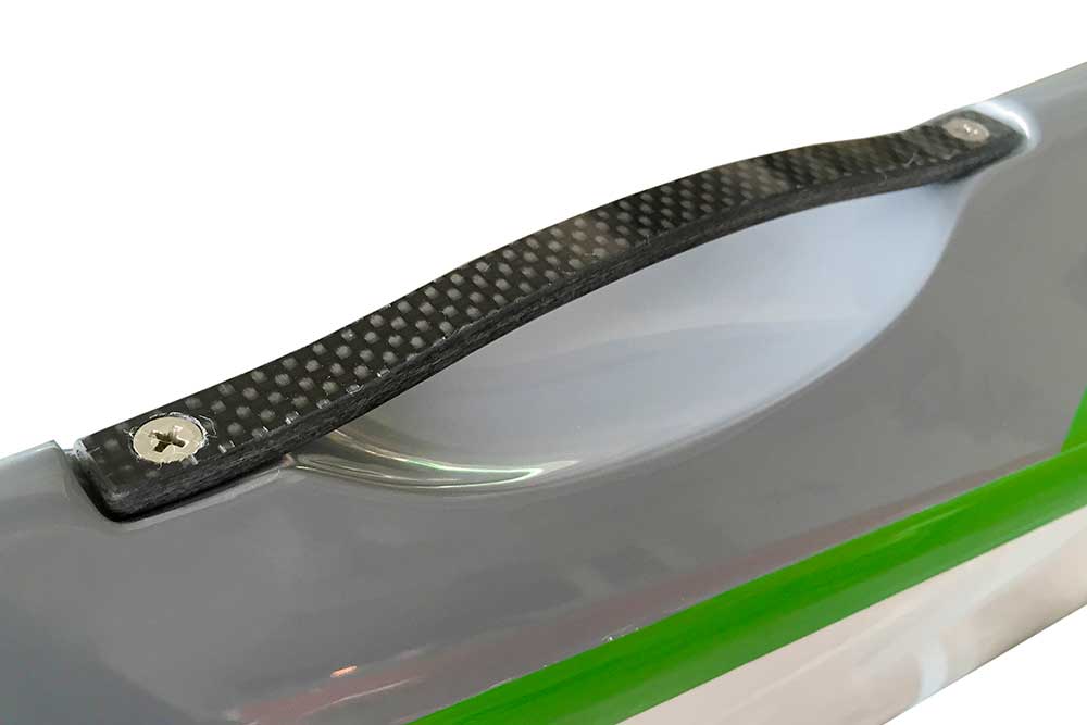 Description: Extremely stiff and light - The ultimate paddling machine that is also easy to move off of the water. Clear finished, heat cured epoxy woven Toray 3k Carbon Fiber laminate with Nomex® Honeycomb Core.